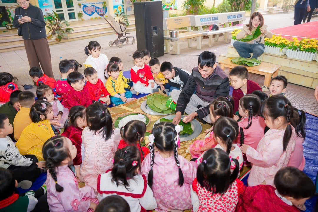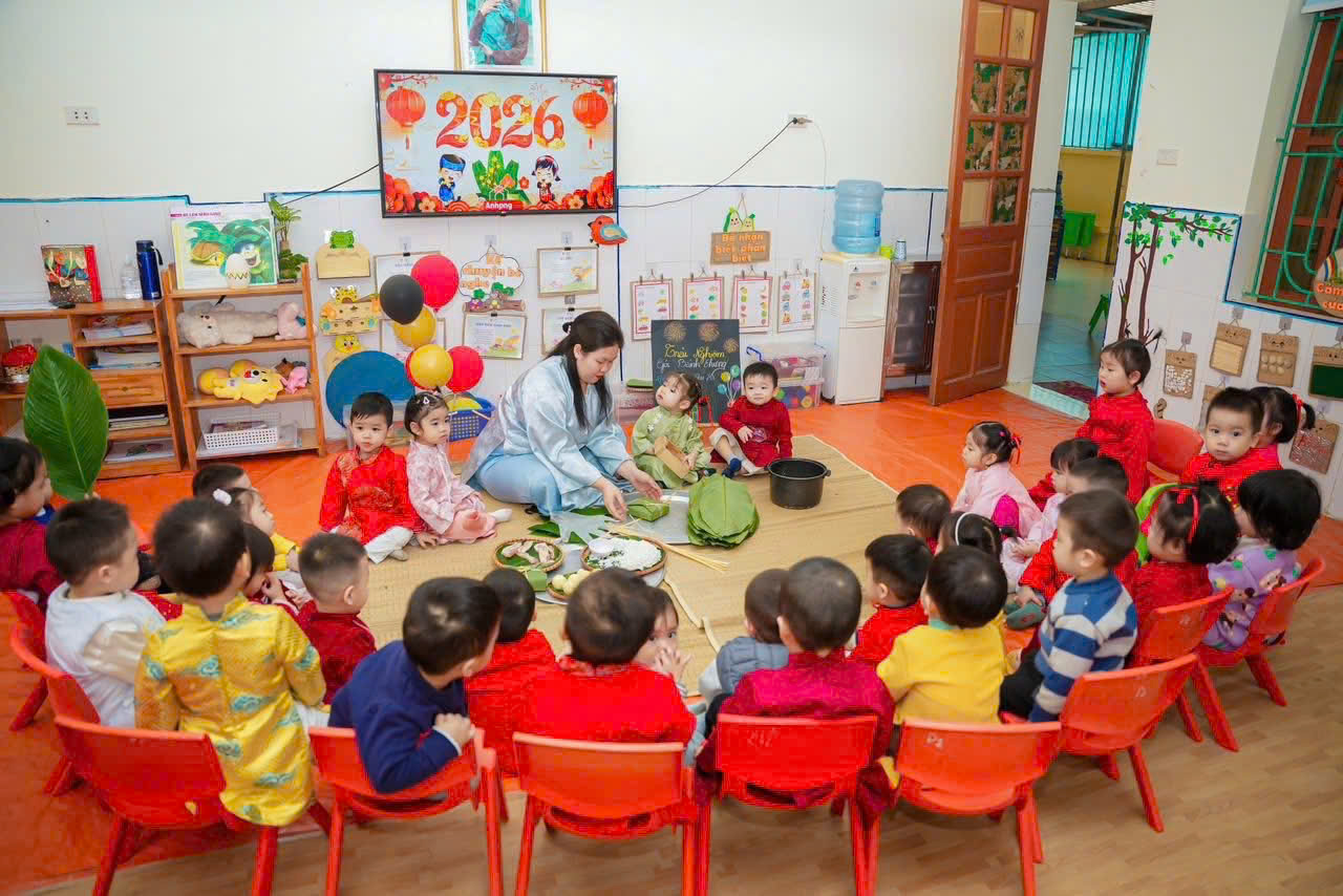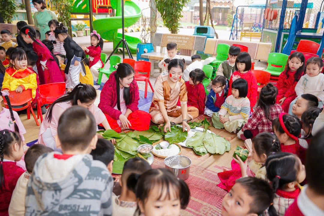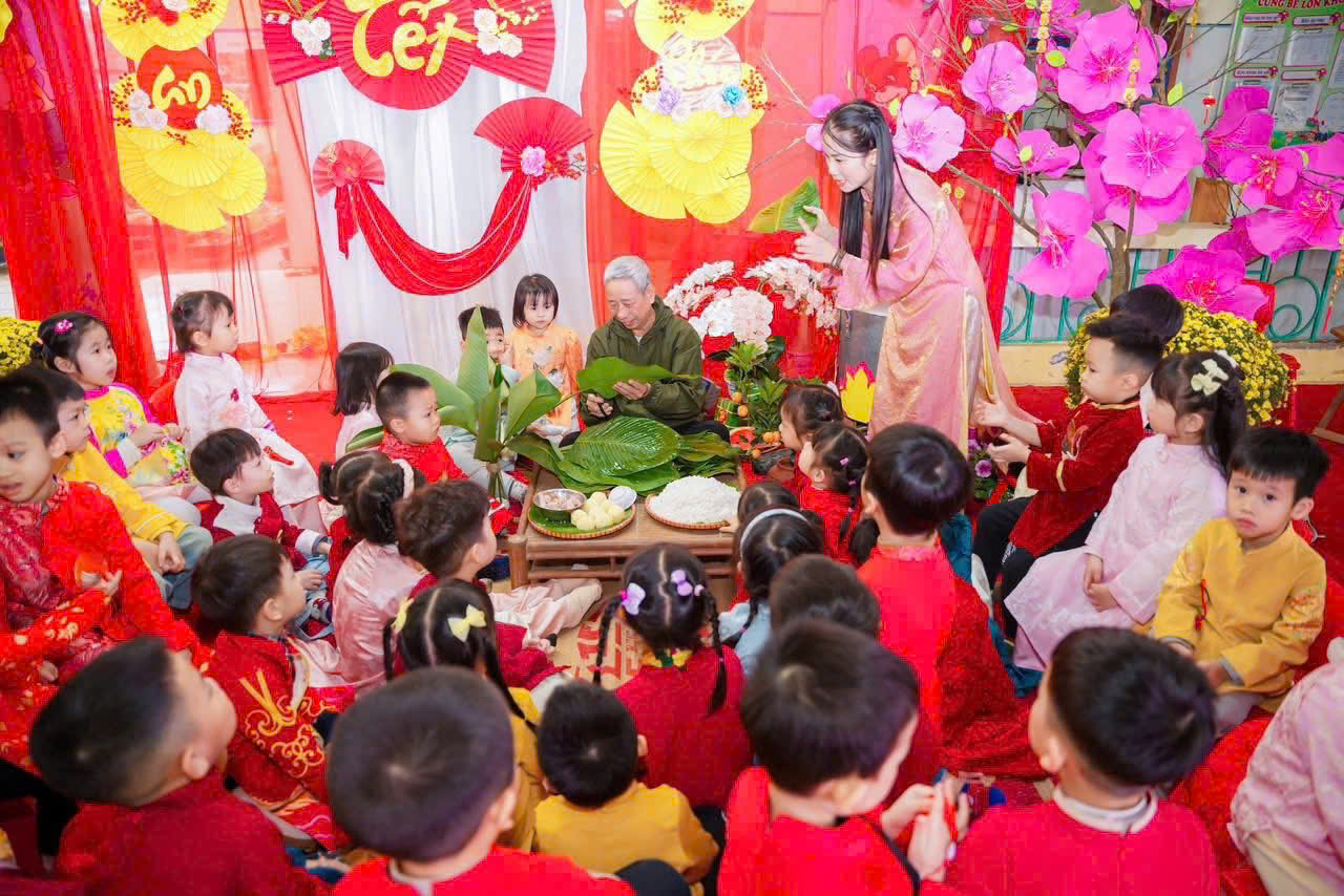Thông qua hoạt động này, trẻ không chỉ được trải nghiệm thực tế mà còn hiểu thêm về ý nghĩa của bánh chưng – biểu tượng của đất trời, của lòng biết ơn và sự sum vầy trong ngày Tết cổ truyền.