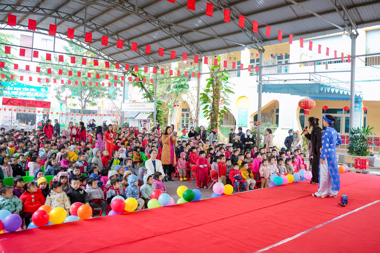 ương trình “Xuân yêu thương ”nhằm giáo dục truyền thống cho các con, tạo cho các con có thêm nhiều niềm vui khi về nghỉ Tết cùng gia đình. Đồng thời, thông qua chương trình này cũng thể hiện về công tác phối kết hợp giữa nhà trường với Ban đại diện phụ huynh trong công tác chăm sóc và giáo dục trẻ.