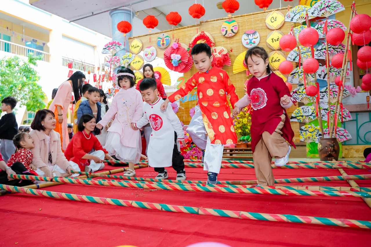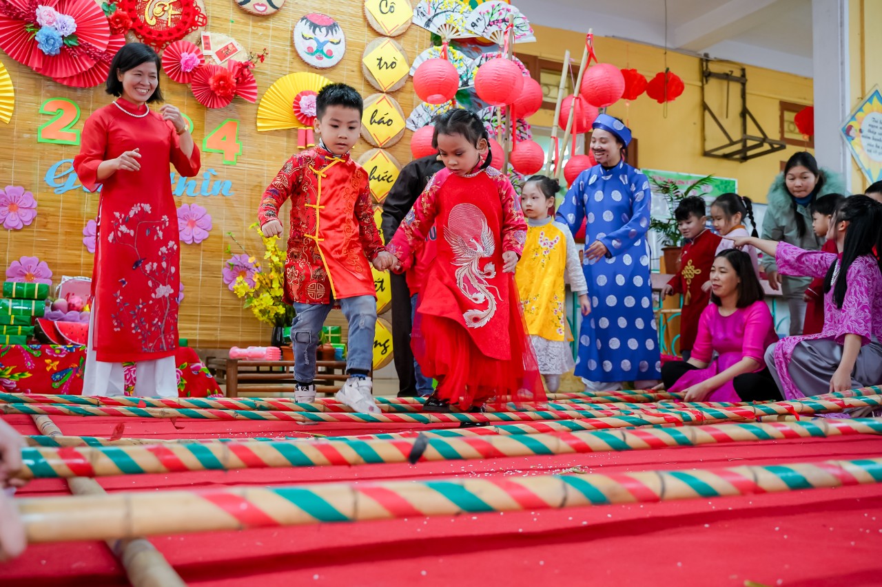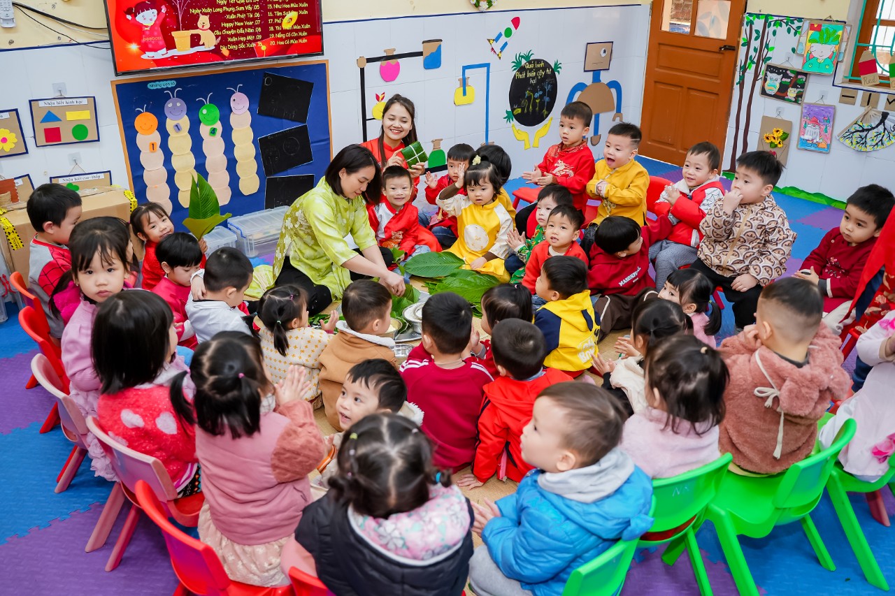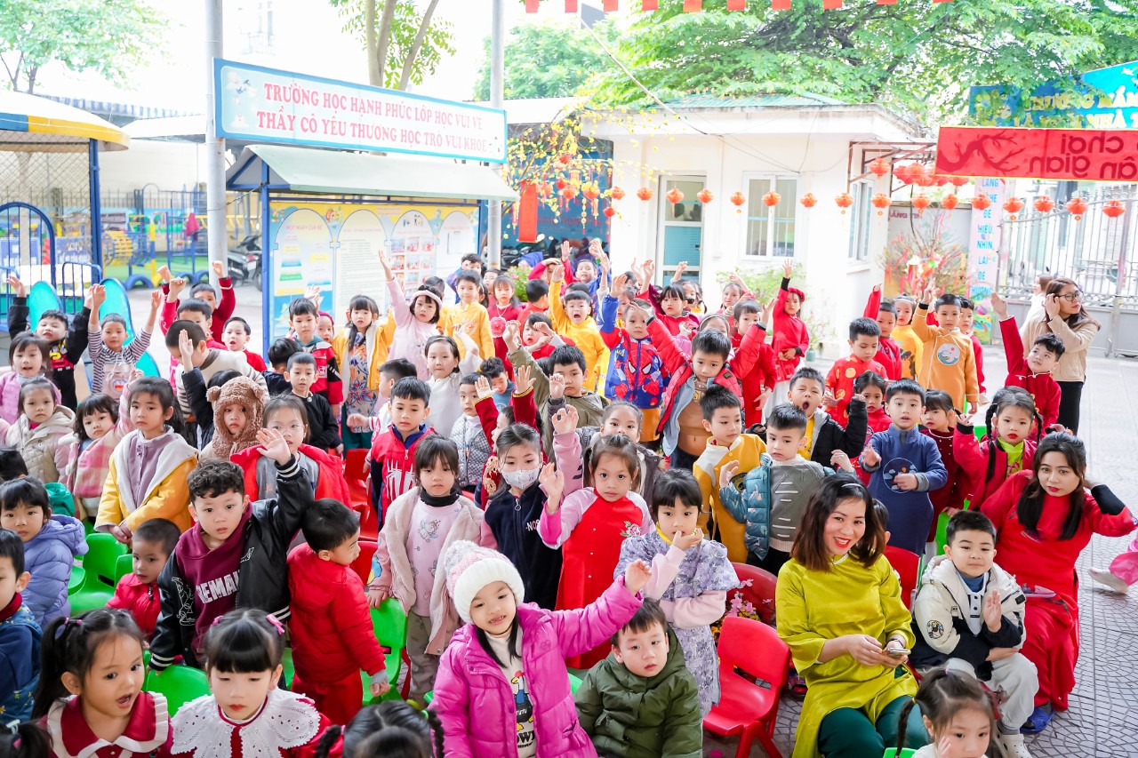 Vào những ngày cuối đông, chuẩn bị bước sang thềm năm mới không khí ở trường học những ngày này càng rộn ràng, phấn khích, Các cô giáo đã tổ chức cho bé và các bạn làm đẹp hơn không gian lớp học của mình như: Trang trí cây đào, cây mai, kết hoa, vẽ tranh, làm thiệp, làm những món quà nhỏ tặng người thân...Bé còn được được giao lưu với các bạn qua các bài hát có nội dung chủ đề Tết và mùa xuân. Thông qua hoạt động, các bé hiểu được ý nghĩa của ngày Tết cổ truyền dân tộc, thể hiện được cảm xúc và khả năng biểu diễn văn nghệ của mình.