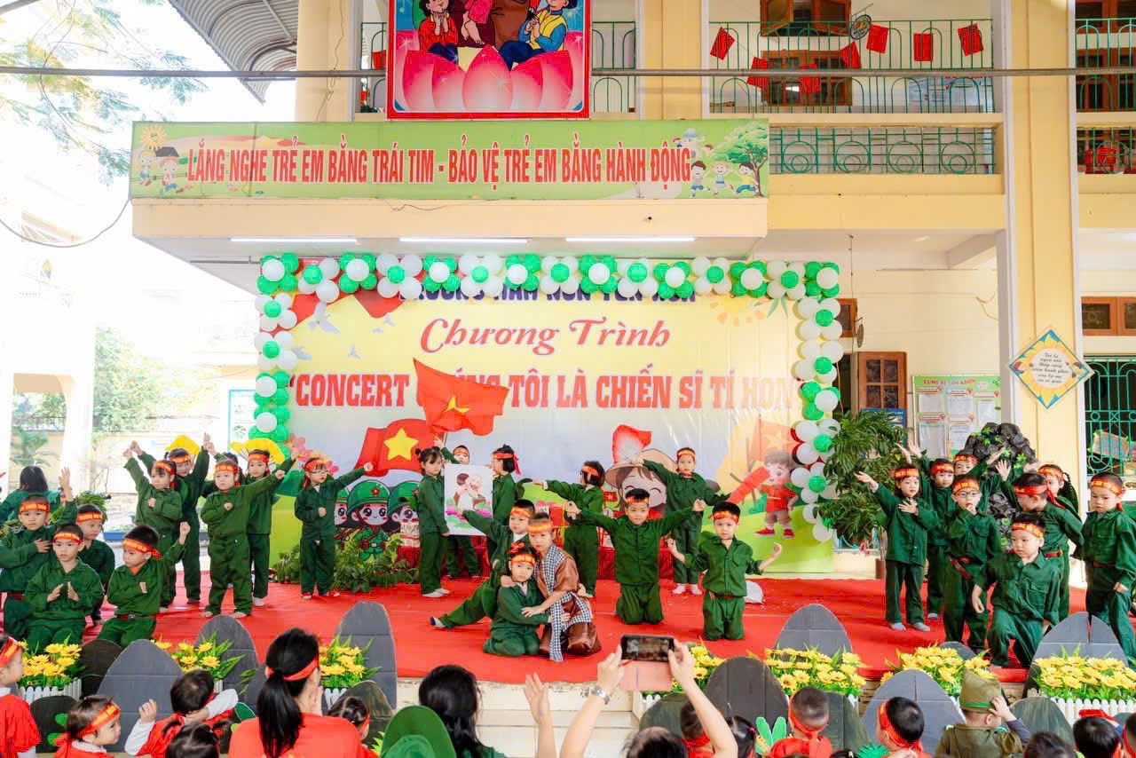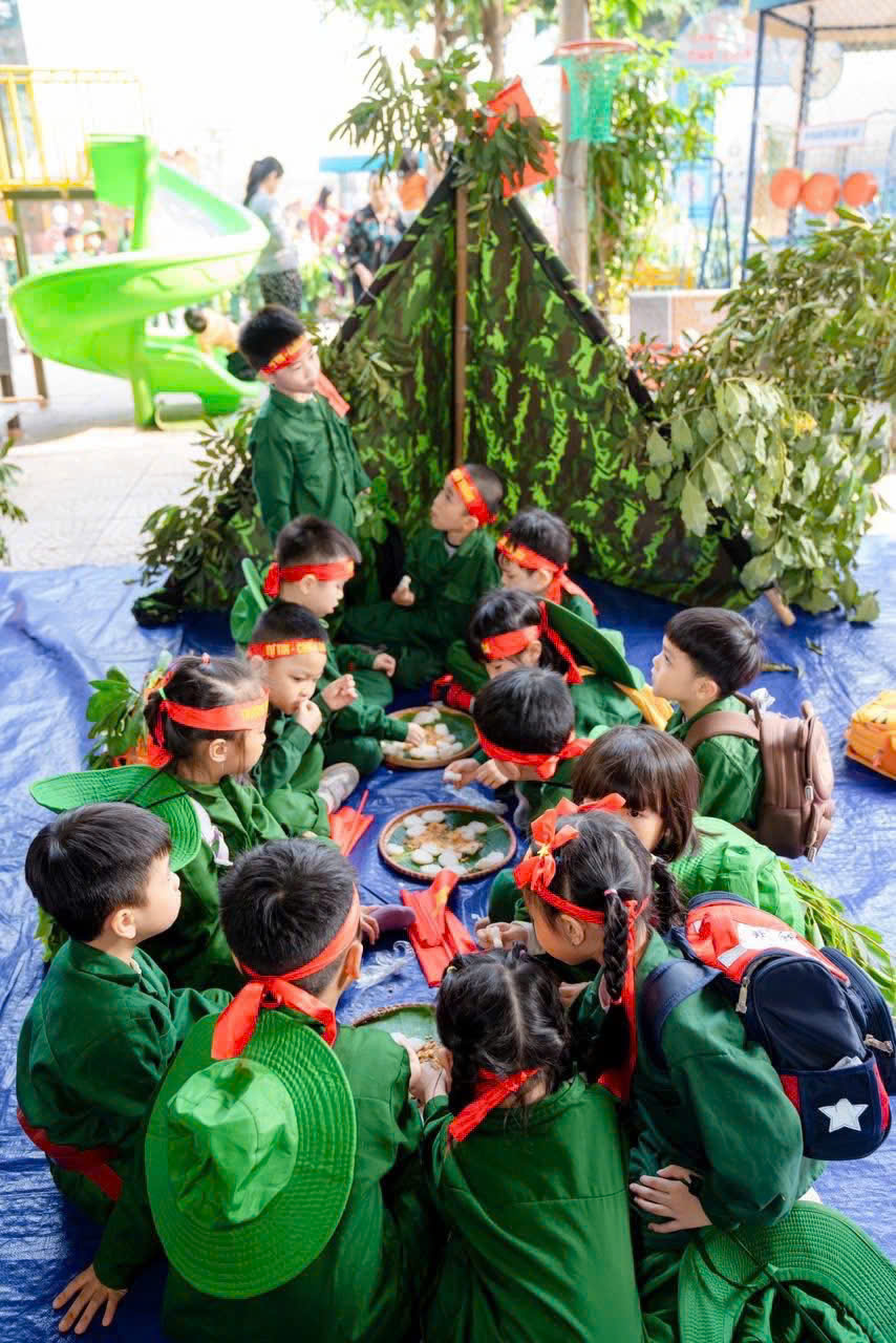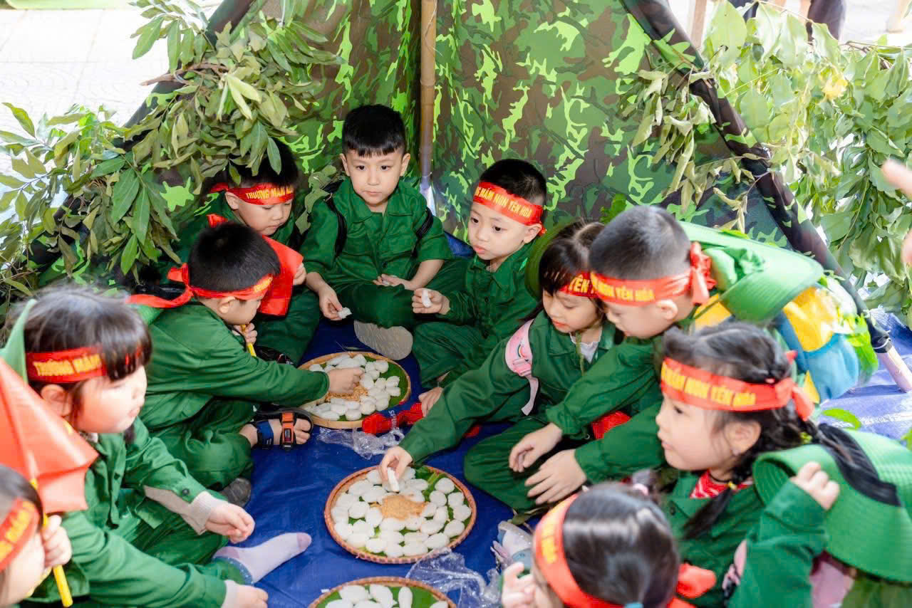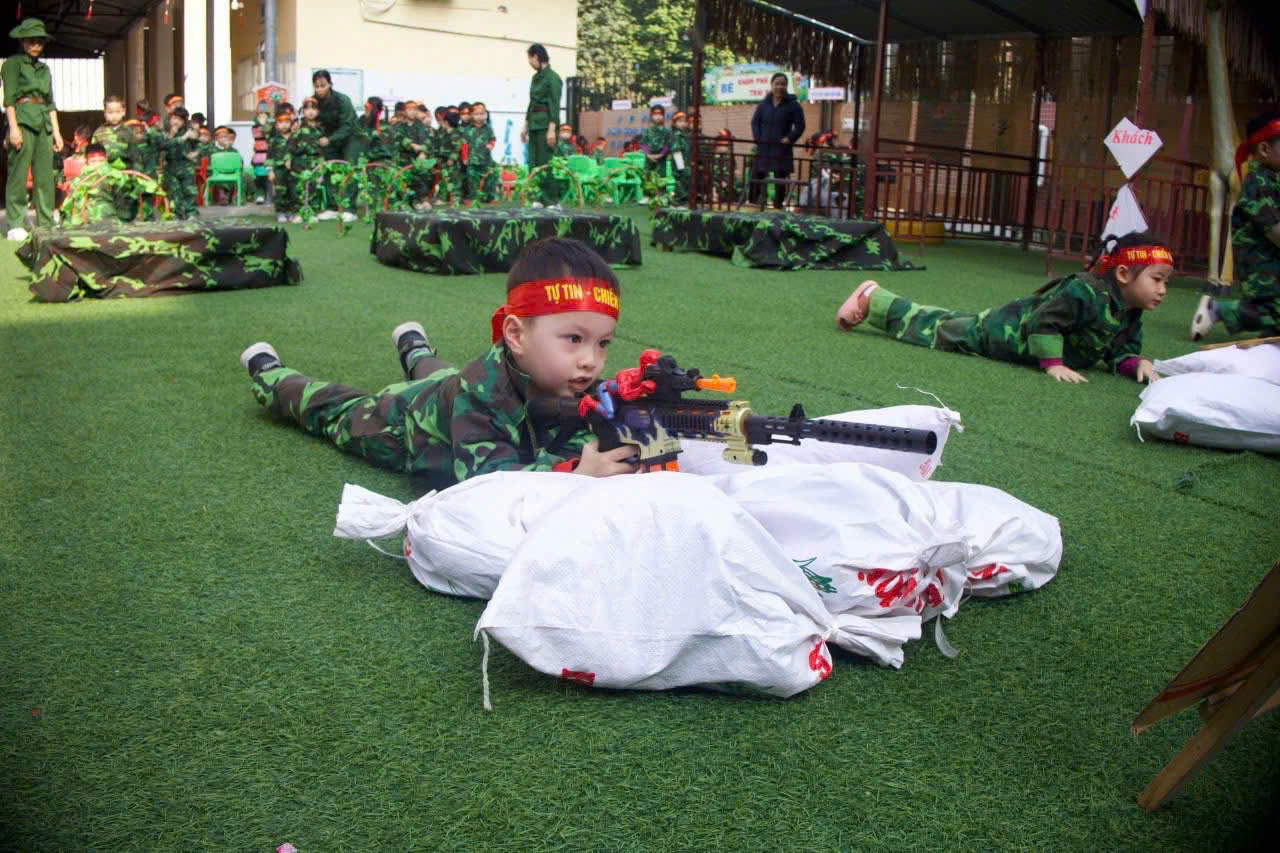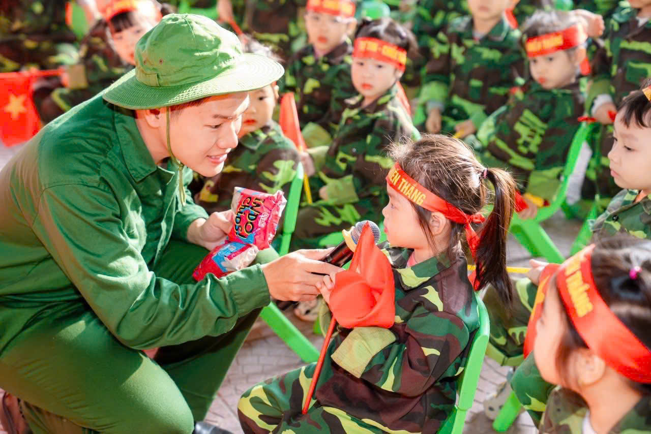 Điểm nhấn của chương trình là khu trải nghiệm “thao trường nhí” dành cho các bạn nhỏ khối MGN, MGB, NT với nhiều nội dung phong phú như bò thấp qua hầm, trườn qua vật cản, tập bắn súng mô phỏng, vận chuyển lương thực... Dưới sự hướng dẫn tận tình của các cô giáo, các em hào hứng tham gia, thể hiện sự dạn dĩ, tự tin và tinh thần vượt khó.Bên cạnh các hoạt động vận động, chương trình còn mang đến những trải nghiệm giàu ý nghĩa giáo dục. Các em được xem video clip giới thiệu về hình ảnh, hoạt động thường ngày của các chú bộ đội, từ công tác huấn luyện, sẵn sàng chiến đấu đến đời sống sinh hoạt giản dị nơi doanh trại.