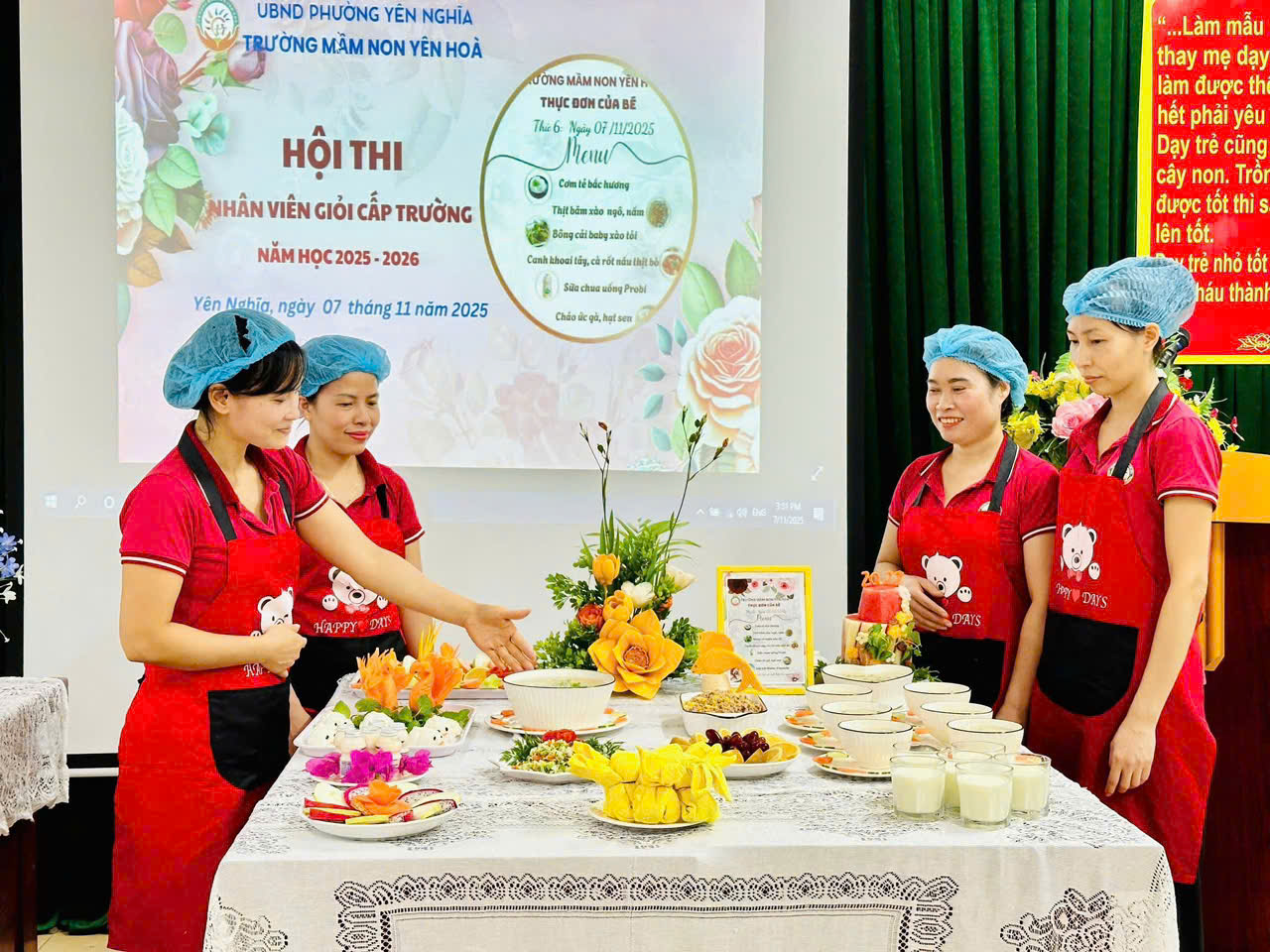 Thực hiện kế hoạch năm học 2025 – 2026, Trường Mầm non Yên Hòa tổ chức Hội thi Giáo viên - Nhân viên nuôi dưỡng giỏi cấp trường, tạo sân chơi chuyên môn bổ ích cho đội ngũ giáo viên, nhân viên.