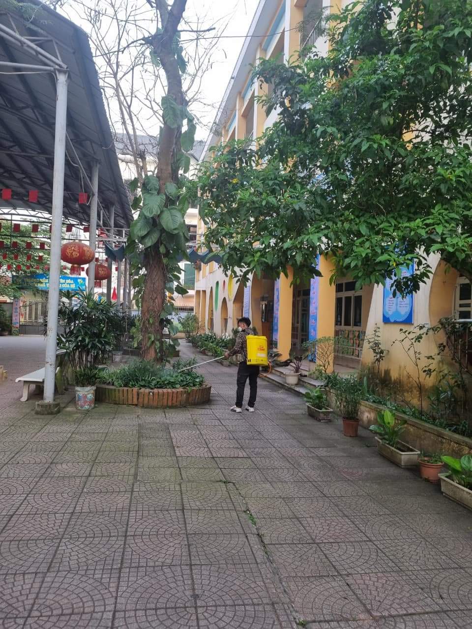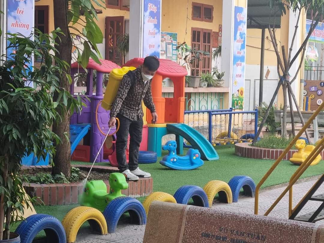 Dưới đây là một số hình ảnh phun thuốc diệt muỗi và tổng vệ sinh của trường Mầm non Yên Hòa