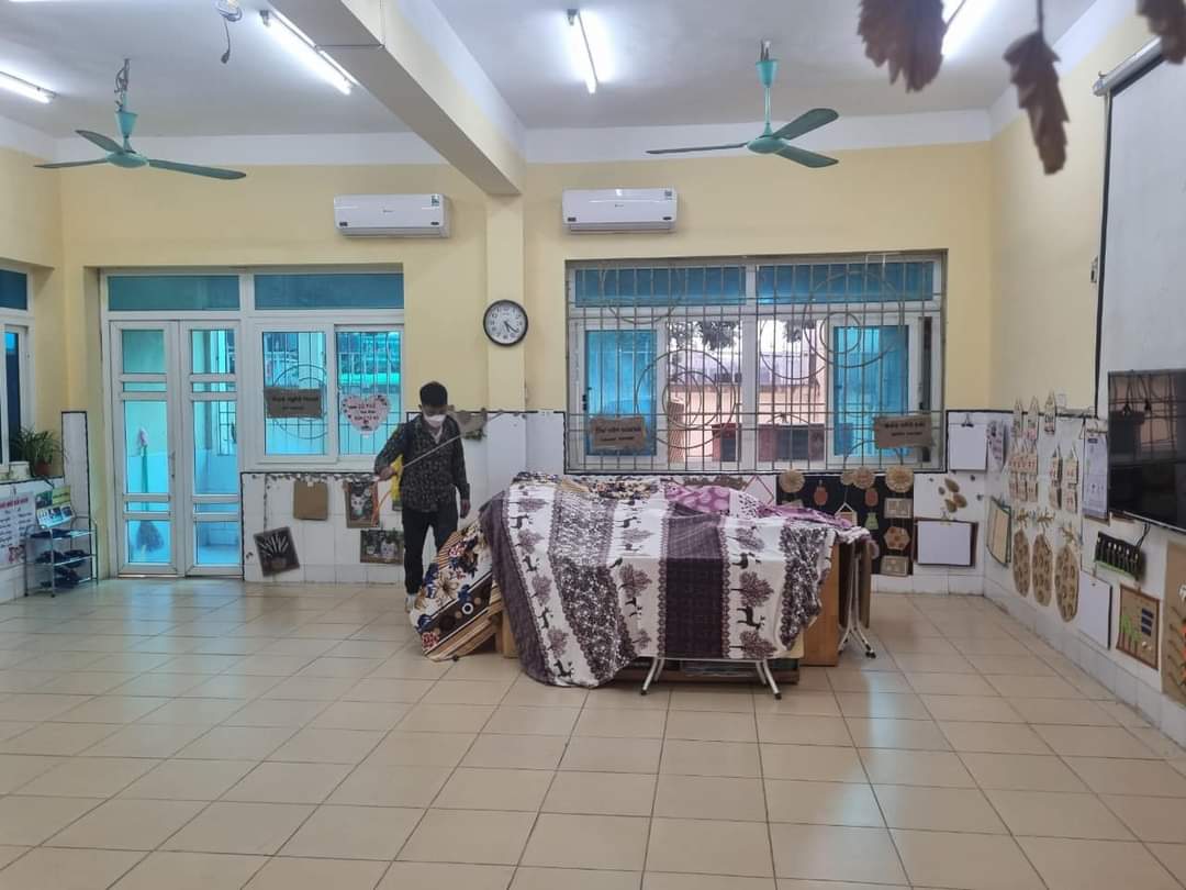 Để chuẩn bị tốt cho công tác phun thuốc muỗi các lớp, các bộ phận trong nhà trường đã thu dọn gọn gàng, đồ dùng, đồ chơi và dụng cụ để đảm bảo vệ sinh. Phun thuốc muỗi toàn bộ các khu vực ngoài sân trường cũng như trong lớp học, các phòng học chức năng, khu vực bếp, các nhà vệ sinh...để đảm bảo toàn bộ các phòng ban trong trường được đảm bảo an toàn, làm tốt công tác phòng chống dịch bệnh.