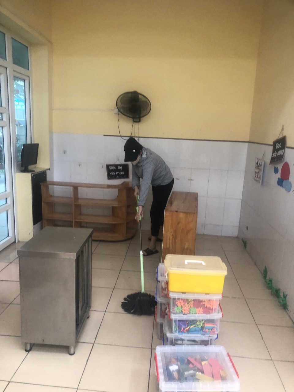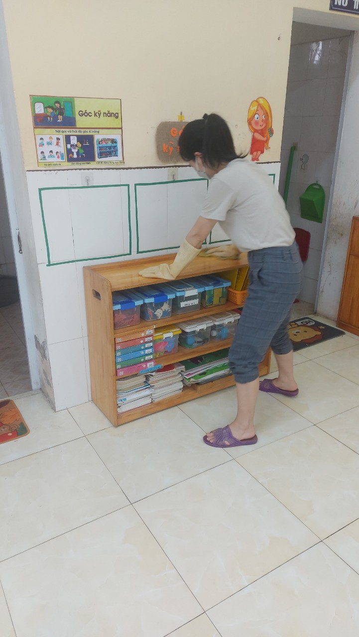 Sau khi thực hiện công tác phun thuốc muỗi BGH nhà trường đã chỉ đạo 100% CBGVNV trong toàn trường thực hiện tổng vệ sinh lau dọn, cọ rửa đồ dùng đồ chơi, sàn nhà, tường, cửa trong lớp và lau rửa, dọn dẹp toàn bộ khuôn viên ngoài lớp học, đồ chơi ngoài